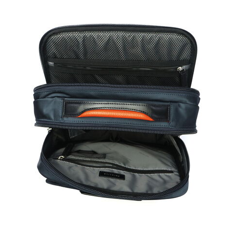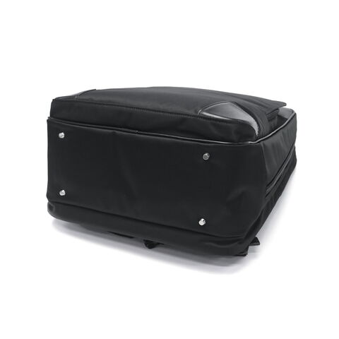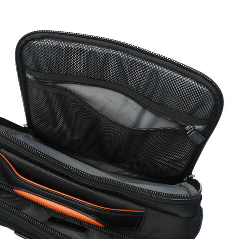 収納部は2層構造となっており荷物の整理整頓が捗る他、デバイス用にクッション付きの収納スペースを複数装備しています。小物用のオーガナイザーポケットに加え、傘やボトルが収まる取り外し可能・手洗い可能なマルチポーチが付属。外装と内装にはリサイクル素材を使用し、サステナブルな仕様にアップデート。撥水加工も施され、ビジネスに必要不可欠なスペックが揃っています。