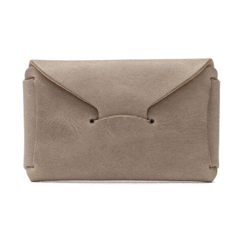 折り紙のように織り込み、一枚革で仕立てたカードケースです。まるで手紙の封筒のようなディテールが、女性らしくて優しい雰囲気を演出します。素材には、蝋引きした牛革を採用。使うほどに手に馴染み、蝋引き独特の色ツヤが増していく過程をお楽しみいただけます。