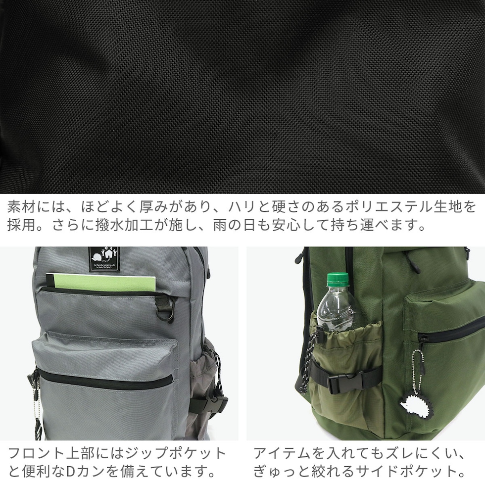 多機能デイパック 大好評のアクティブデイパックがリニューアルして登場!。雨の日に嬉しい撥水加工や、Kotaとコラボした特別仕様のロゴなど、機能とデザインの両方をアップデート◎。大容量なメインルームの他にも、たくさんの収納ポケットを備えているため、遊びも仕事も多様なシーンに使えて重宝できるアイテムとなっています。 |