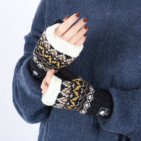 | 暖かさを纏い 指先は自由に どんな場面でも使いやすいフィンガーレス手袋。指先が自由に使えるので、スマホ操作や小銭の支払いもスムーズです。内側はふわふわのボア素材で暖かさ抜群。異素材ミックスのニットデザインが、柔らかな印象をプラスします。 |