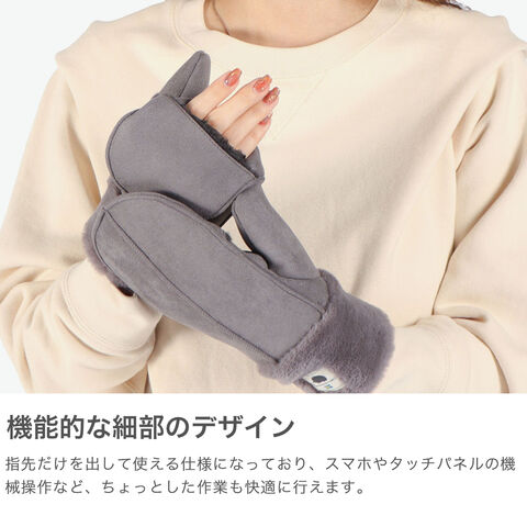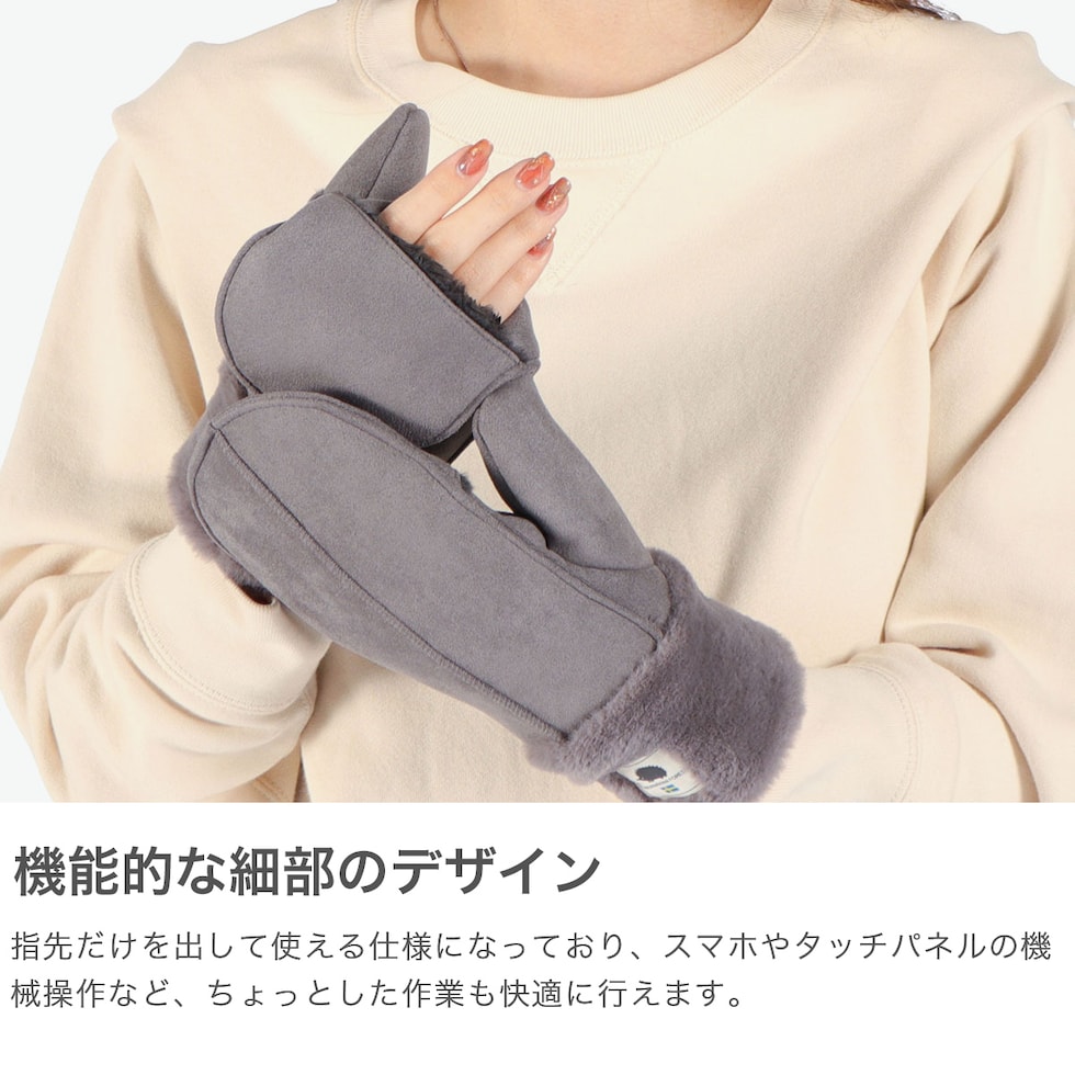 手元を優しく包み、寒い季節も快適なミトンタイプの手袋。指出しもできる仕様でスマホ操作もスムーズ。スエード調×ファーの素材感で上品な印象に。デイリーにもおでかけにも活躍する、おしゃれであたたかな冬のマストアイテムです。