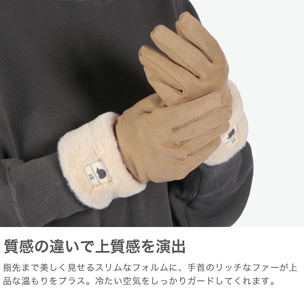 | あたたかくて上品な 冬のマストアイテム 手元を優しく包み、寒い季節も快適なスエード調の手袋。スマートなシルエットとスエード調×ファーの素材感で上品な印象に。デイリーにもおでかけにも活躍する、おしゃれであたたかな冬のマストアイテムです。 |