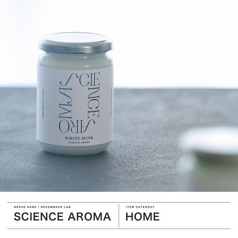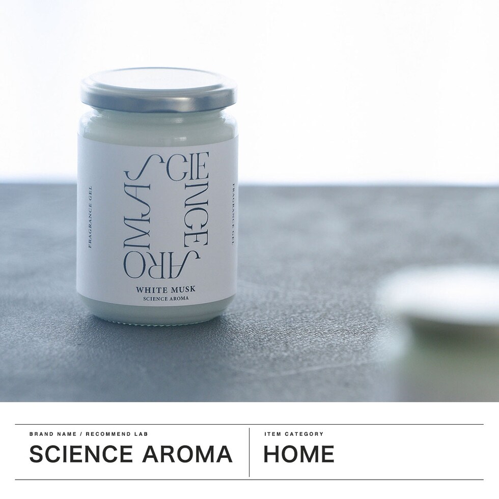 香りの効果・効能について科学的にアプローチするブランド『サイエンスアロマ』。こちらは、九州大学との共同研究により香料が分析された、ホワイトムスクの香りのフレグランスジェル。シンプルでお洒落なデザインは、リビングや玄関、寝室にも調和します。植物性消臭成分配合で、芳香と消臭を両立。ギフトにも最適なスタイリッシュなアイテムです。