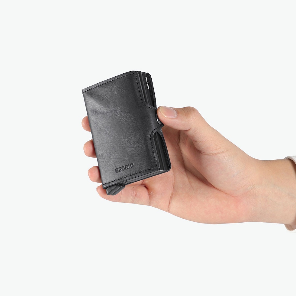 | スマート時代の新定番 ミニマム志向に最適 キャッシュレス化に合わせた、カード優先の新しいミニ財布です。Twinwalletはカードプロテクターを2つ使用することで、カードの容量を2倍に。コンパクトながら紙幣も収納可能と、見た目も使い勝手もスマートなアイテムになっています。 |