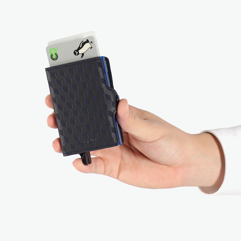 | 日常をスマートにする ミニマム派ウォレット キャッシュレス化に合わせた、カード優先の新しいミニ財布です。Twinwalletはカードプロテクターを2つ使用することで、カードの容量を2倍に。コンパクトながら紙幣も収納可能と、見た目も使い勝手もスマートなアイテムになっています。 |