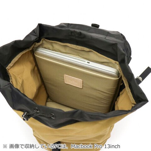 | 仕様 | <外側> ジップポケット(M)×1 └ 内蔵 ポケット(XS)×1 キーフック×1 <内側> PC収納×1 |