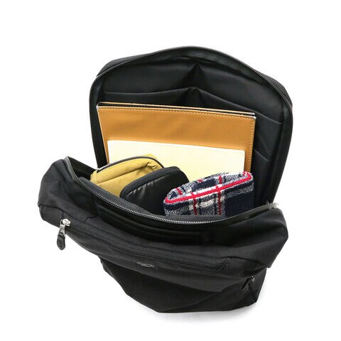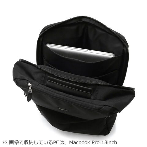 | 仕様 | <外側> ジップポケット(M)×2 ジップポケット(S)×1 └ 内蔵 ポケット(XS)×1 ペンホルダー×2 <内側> PC収納×1 タブレット収納×1 |