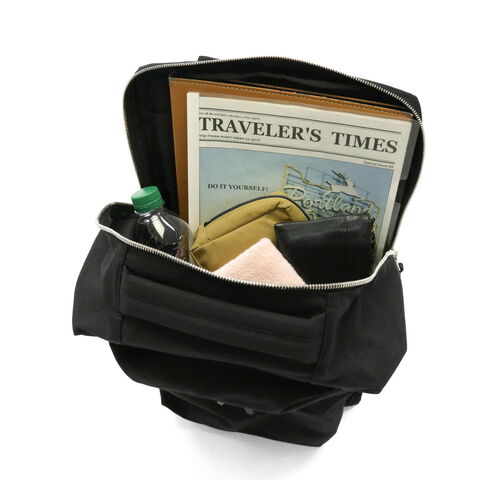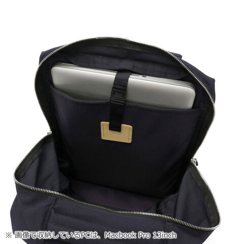 | 仕様 | <外側> ジップポケット(L)×1 └ 内蔵 ポケット(S)×2 キーフック×1 <内側> PC収納×1 ボトルホルダー×1 |