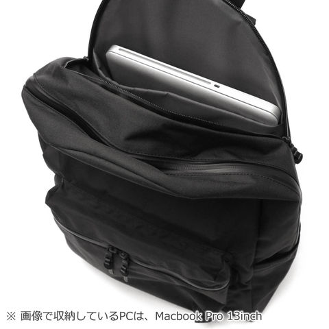 | 仕様 | <外側> ジップポケット(M)×1 └ 内蔵 ポケット(XS)×2 キーフック×1 ベルクロポケット(S)×1 ポケット(S)×1 <前面収納> ボトルホルダー×2 <背面収納> PC収納×1 |