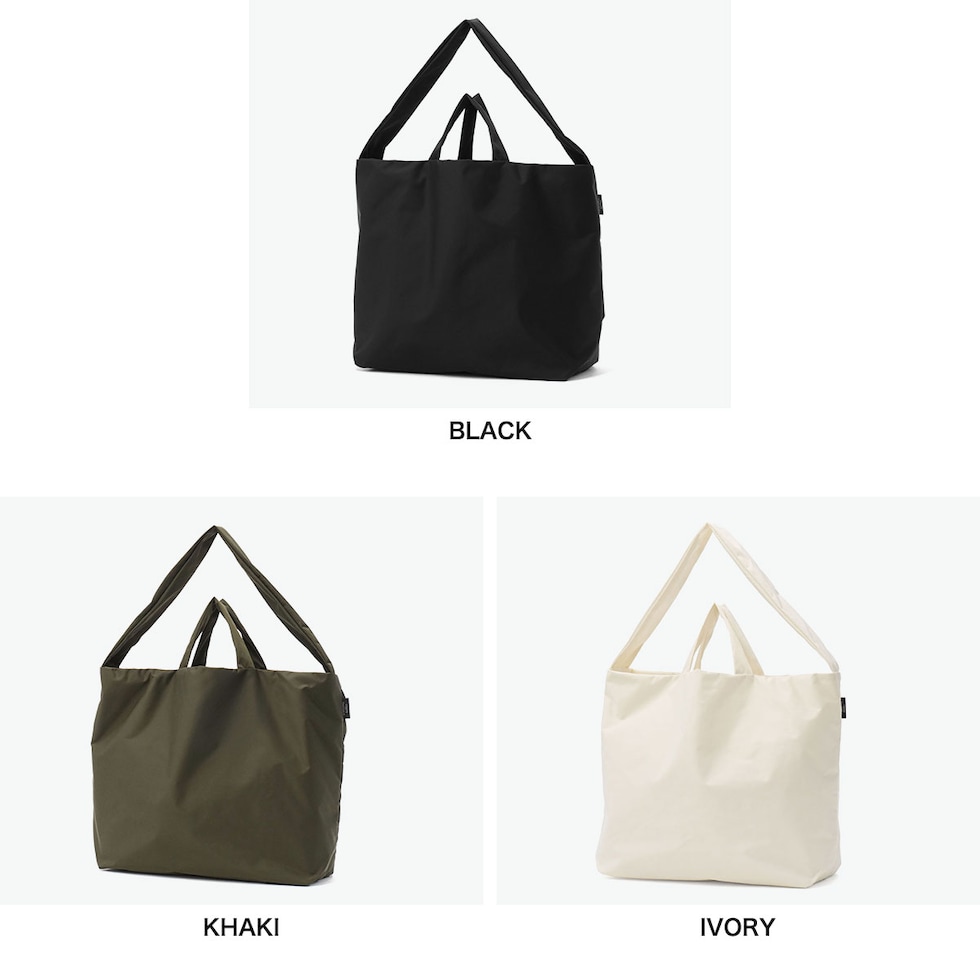 大人のデイリートート ステッチレスのすっきりとしたデザインと、軽く上品な素材感が特徴的なトートバッグ。手持ちと肩掛け、どちらでも使える2WAY仕様になっています。メインルームはA4サイズに対応しており、デイリーバッグとしてシーンを問わず使いやすいサイジングに。ナイロンのような発色性で上品な光沢感があり、大人カジュアルなスタイルにぴったりのアイテムとなっています。 |