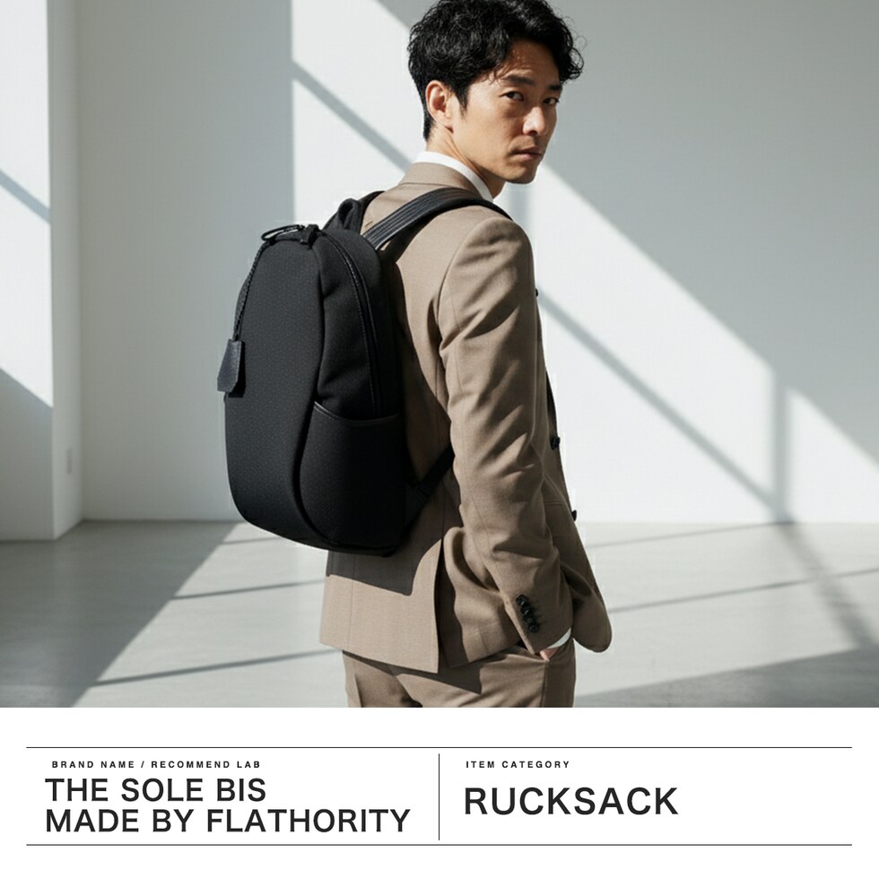 アーバンリュック 時代性にそった最高のクオリティーを求めて様々なアイテムを展開するブランド「THE SOLE」と、日本の老舗バッグ工房が作り出す「Flathority」とのコラボレーション『THE SOLE bis made by Flathority』。こちらは、デザイン性と実用性のバランスが素晴らしいビジネスやカジュアルスタイルにも対応できる汎用性の高いリュックです。無駄を極限まで削ぎ落としながら都市生活に必要な収納や機能を残し、使用する方のアイデンティティーを邪魔しないシンプルなデザインとなっています。 |