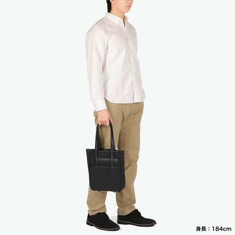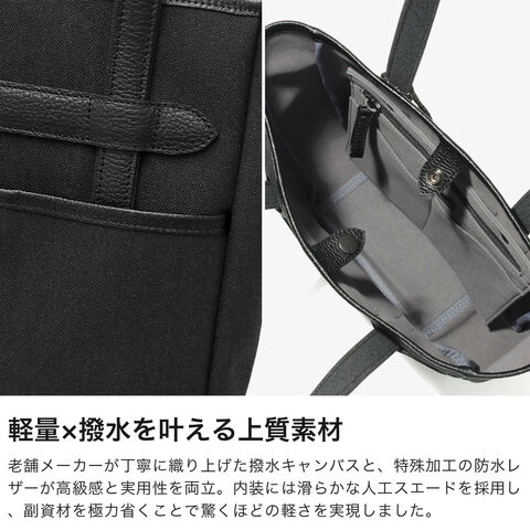 | 研ぎ澄まされた ミニマルデザイン 時代性にそった最高のクオリティーを求めて様々なアイテムを展開するブランド「THE SOLE」と、日本の老舗バッグ工房が手掛ける「Flathority」とのコラボレーション『THE SOLE bis made by Flathority』。手持ちでも肩掛けでも使いやすいミドルサイズの縦型トートで、A4サイズやタブレットなどをすっきり収納可能。撥水性のあるキャンバスとレザーを組み合わせ、立体構造で型崩れしにくい設計に。通勤から休日まで幅広く活躍します。 |