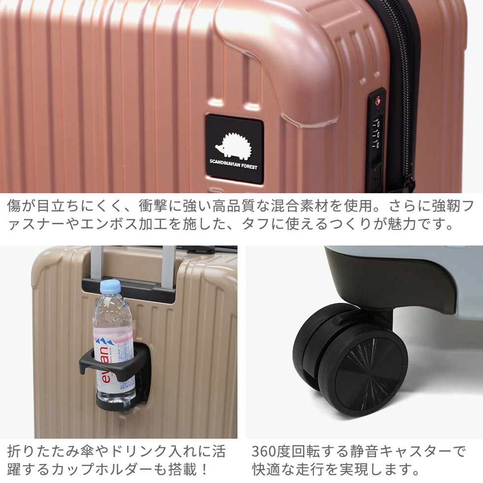 【正規品1年保証】 スカンジナビアンフォレスト スーツケース Mサイズ SCANDINAVIAN FOREST ハリネズミ キャリーケース 拡張 おしゃれ 静音 旅行 キャリー 61L 66L 6~7泊 ドリンクホルダー付き SFRS-2402-M