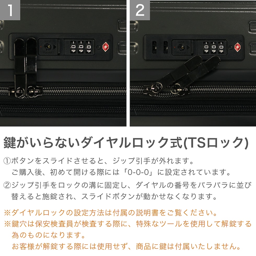 | TSAロック | あり ※TSAロックについて |