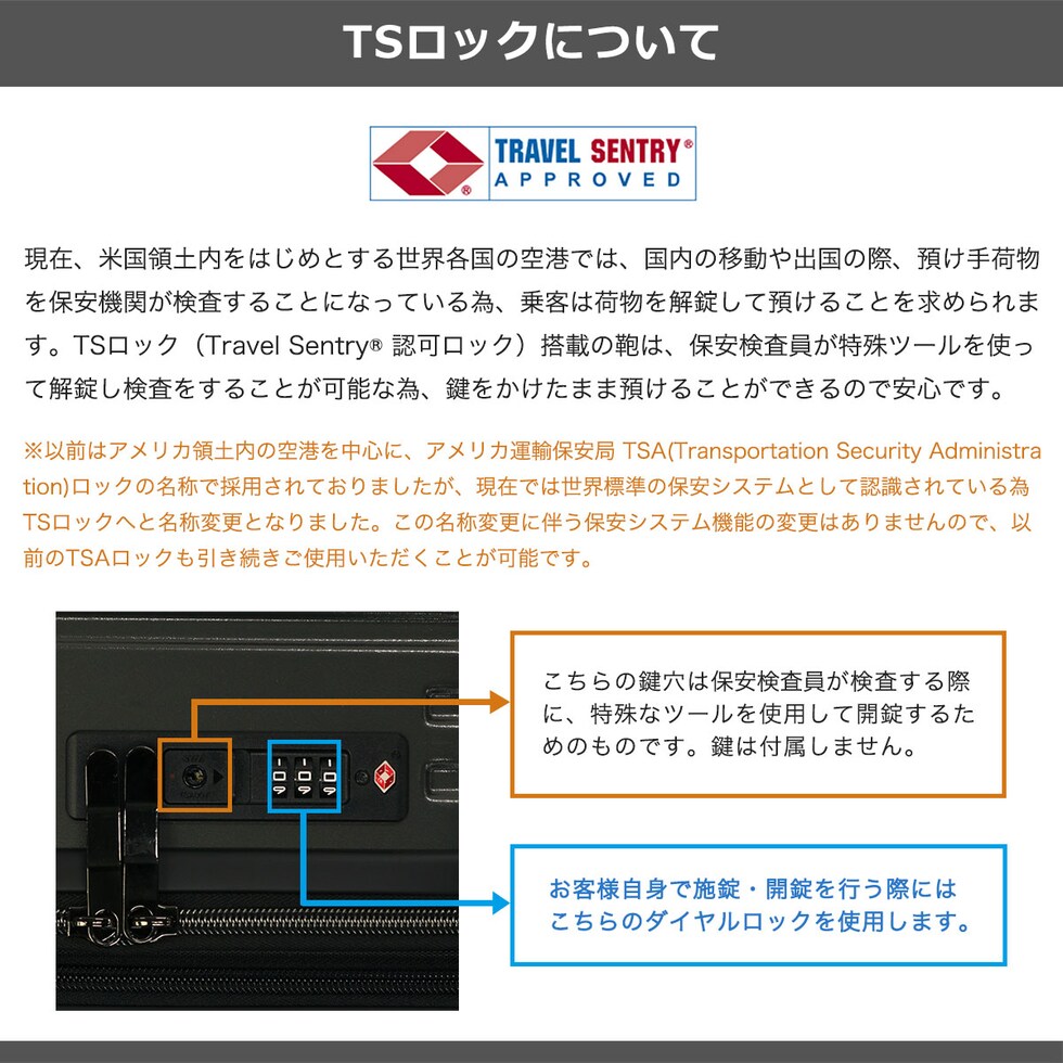 | <購入前にご確認ください> ・メーカーの意向により、付属品の収納袋や箱、製品の仕様やデザインは予告なく変更となる場合がございます。 ・下記による返品・交換はお受けすることができませんので、予めご了承ください。 └ 製品の性質上による細かいキズや塗装ムラ、気泡などがある場合。 └ 配送用の段ボールにキズ、汚れ、破損がある場合。 ・エキスパンダブル機能付きの製品は、マチ拡張時の3辺の和が機内持ち込みサイズ、預け入れ無料サイズを超える場合がございます。また、航空会社や飛行機の機種などによって規定が異なりますので、予めご確認の上お求めください。 ※機内持ち込みサイズ目安表はこちら ・摩擦・水濡れ・日焼けなどにより、色落ち・色褪せが生じる場合があります。 また、製品と衣類の接触により、相互に色移りする場合がございます。 ・柄の位置やカラーバランスなどは、生地の裁断や製造過程、素材の特性により画像とは異なる場合がございます。商品をお選びすることはできませんので、予めご了承ください。 ・極力実物に近い色味を再現しておりますが、モニター等の条件により画面上と実物では色味が異なって見える場合がございます。 |