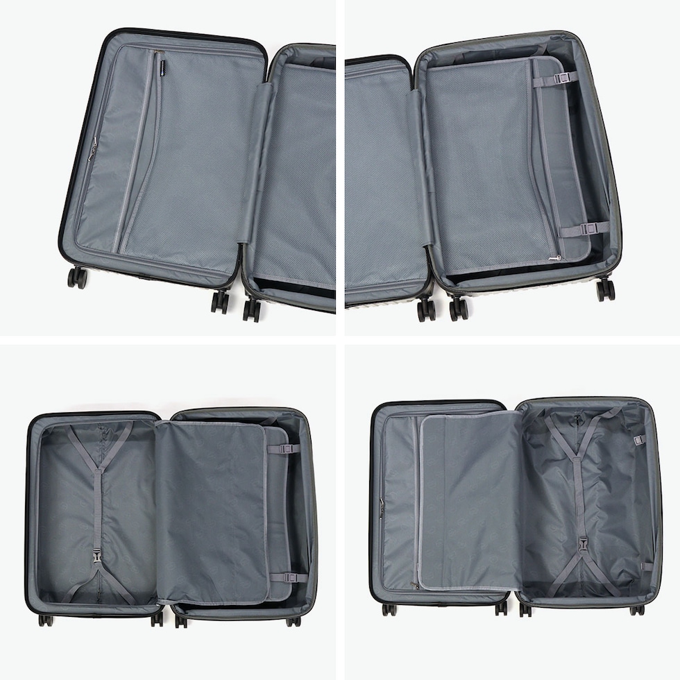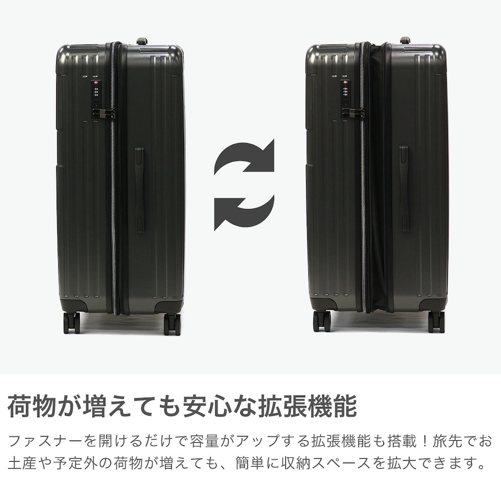 大容量キャリーケース 100Lから105Lに拡張でき、長期旅行も余裕の収納力を持つLサイズのスーツケース。静音ダブルキャスターでスムーズな移動をサポート。外側にはドリンクホルダーやフック機能も搭載し、使いやすさ抜群!北欧国旗をさりげなくあしらった洗練されたデザインと機能性を兼ね備えた、家族やパートナーともシェアしやすいユニセックスでお使いいただけるトラベルケースです。 |