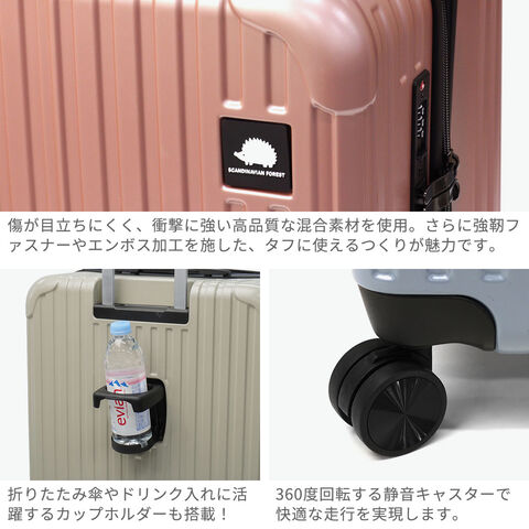 【正規品1年保証】 スカンジナビアンフォレスト スーツケース Lサイズ SCANDINAVIAN FOREST ハリネズミ キャリーケース 拡張 おしゃれ 静音 旅行 1週間 長期 100L 105L 10泊 ドリンクホルダー付き SFRS-2402-L