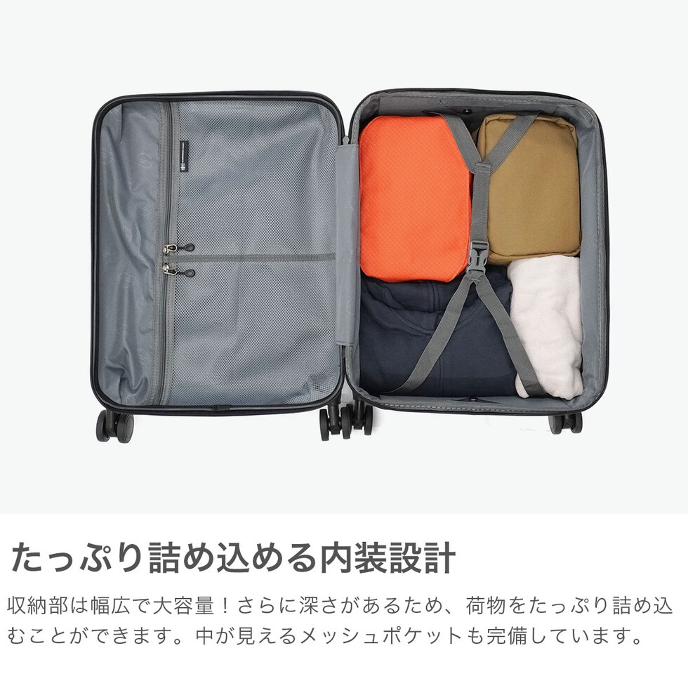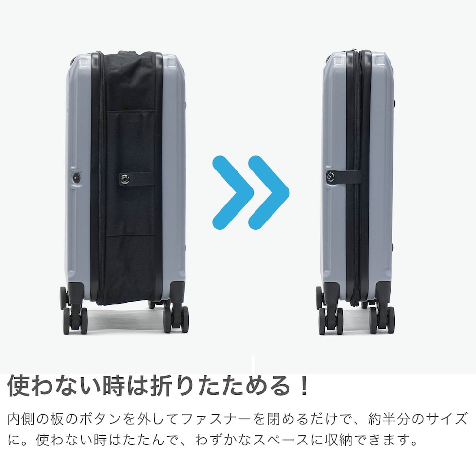 ・エキスパンダブル機能付きの製品は、マチ拡張時の3辺の和が機内持ち込みサイズ、預け入れ無料サイズを超える場合がございます。また、航空会社や飛行機の機種などによって規定が異なりますので、予めご確認の上お求めください。