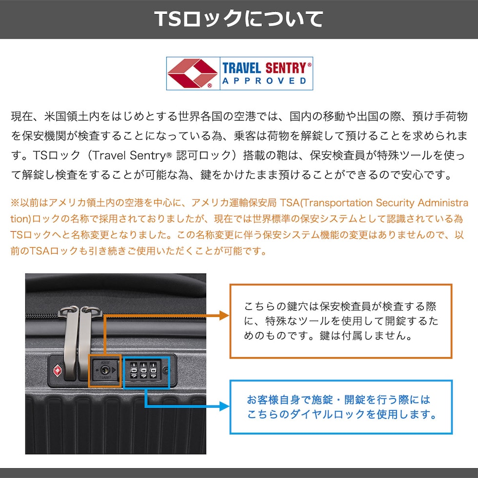 | TSAロック | あり ※TSAロックについて |