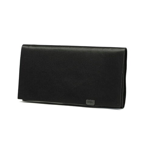 贈答品を包む「袱紗(ふくさ)」をモチーフにし、上質な一枚革を折って成形。縫わずに最後に1点をボルト&ナットで留め付けるだけという、日本の美学が表現されたデザインです。ファスナーやボタンを使わず、レザー本来の風合いを最大限に活かしています。