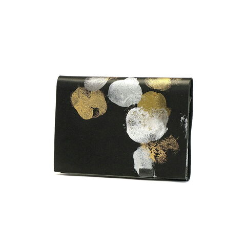 暗闇の水中を優雅に漂う金魚。ゆらゆらと光る海月。金魚と海月をモチーフに、鮮やかな「金」や「銀」の彩りでハンドランダムペイントを施した「和」を連想するような美しいデザインの三つ折り財布。大人が持つに相応しい、遊び心のある特別な逸品です。