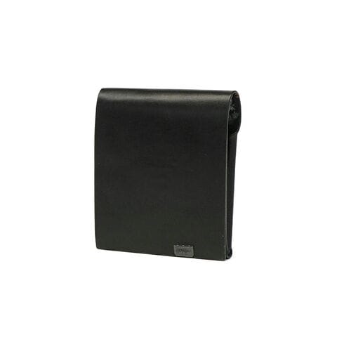 贈答品を包む「袱紗(ふくさ)」をモチーフにし、上質な一枚革を折って成形。縫わずに最後に1点をボルト&ナットで留め付けるだけという、日本の美学が表現されたデザインです。ファスナーやボタンを使わず、レザー本来の風合いを最大限に活かしています。