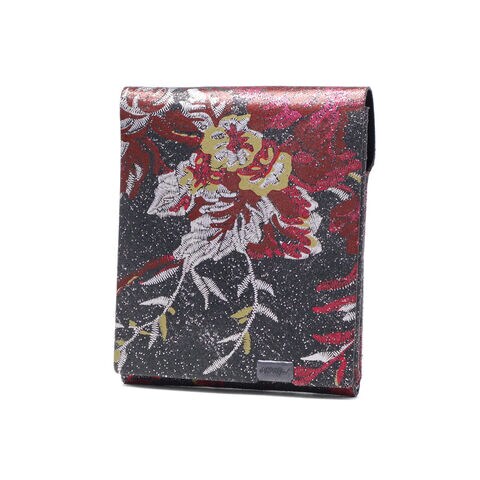 | 繊細な美しさを纏う 刺繍のような花模様 黒地に花の刺繍をあしらったかのような絵柄が印象的でコンパクトな三つ折り財布。和の趣と華やかなコントラストが美しく、近くで見ると糸のように細やかなラインが重なり、ブランドらしい美意識が際立ちます。上質な牛革を一枚で折り上げた軽量スリム仕様で、使うほどに味わいが深まり、日々の装いに上品なアクセントを添えてくれます。 |