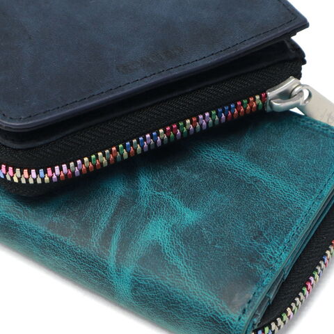使いやすさを両立 独特なムラ感のあるレザーを使用した『NASHIKA series』の二つ折り財布です。しっとりとした手触りのホースレザーで、使い込むほどに味わい深くなる経年変化を楽しめます。コンパクトなサイズ感ながら、仕切り付きの小銭入れやカード収納も備え、使いやすさも抜群です。シンプルな本体にカラフルなマルチカラーのファスナーをあしらい、さりげない遊び心をプラス。落ち着いたデザインの中に個性を感じる、使うほどに愛着が増すこだわりのアイテムです。 |