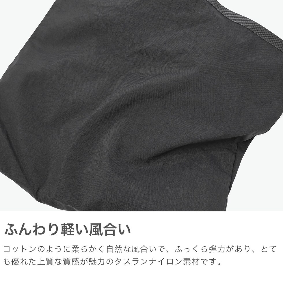 | 豊かな風合いが魅力の 2WAYショルダー コットンのような柔らかな風合いを持つ、シワ加工ナイロンを採用した2WAYショルダーバッグ。タスラン加工糸により、ナチュラルでソフトな質感を実現しています。フィラメントを撚らず空気でループ状に結束する加工により、ふっくらとした膨らみと程よい弾力を確保。軽量ながら耐久性も高く、A3サイズが収納可能な大容量。荷物の量や持ち方によってフォルムが変化するのも魅力です。 |