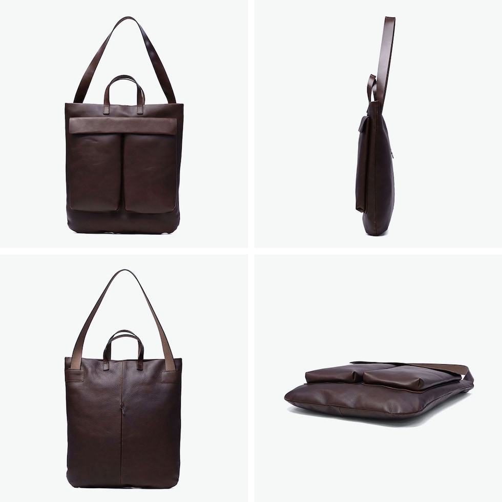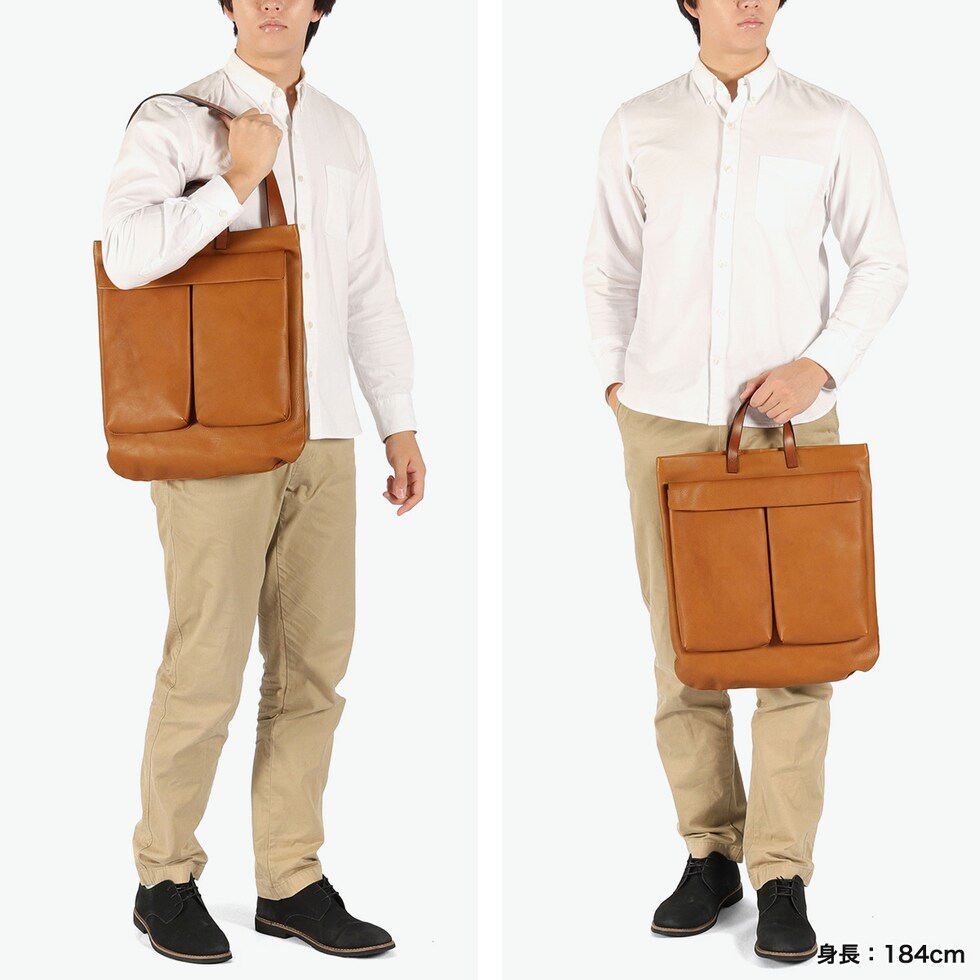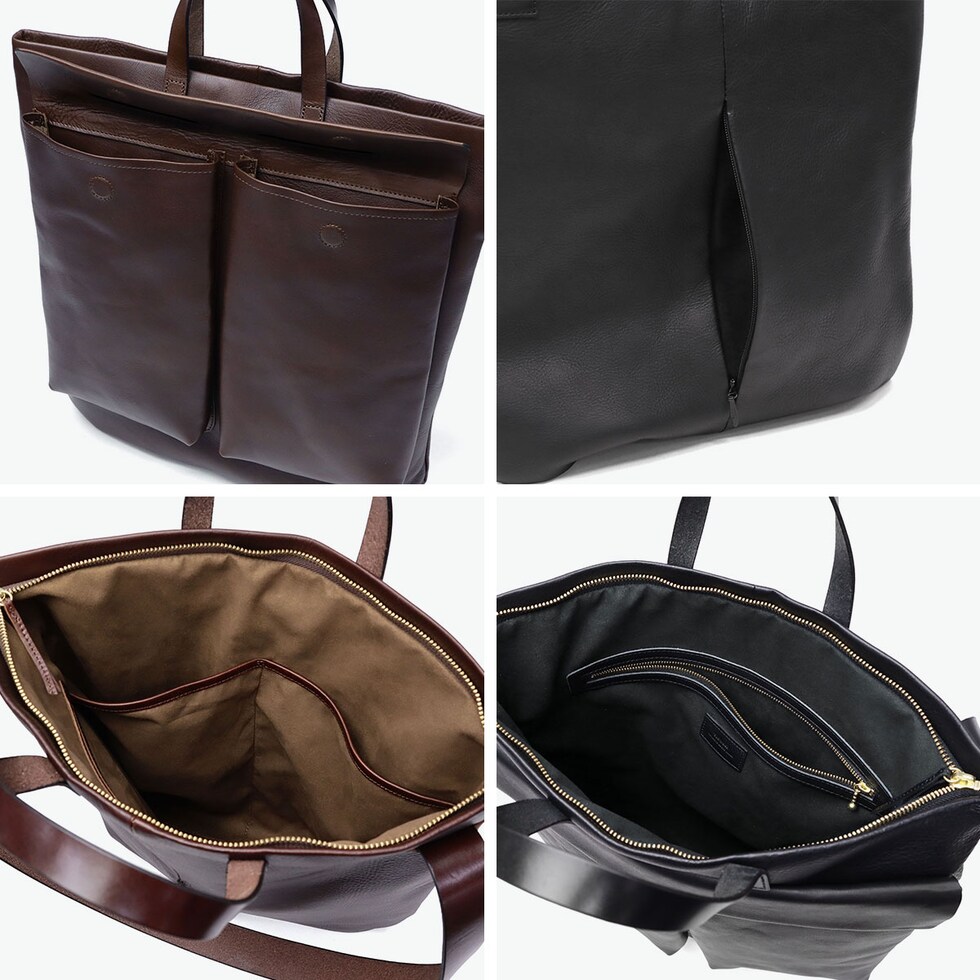 兵庫県姫路市のタンナーが手がける、クロームとタンニンの独自のコンビ鞣しを施した『cb』のトートバッグ。柔らかくしなやかな風合いを持ちながらも、革に程よい締まりがあるのが特徴です。アメリカ空軍のヘルメットバッグをデザインソースに、上質レザーで洗練された佇まいに仕上げました。書類や雑誌が収まる実用的なサイズに、手持ちと肩掛けができる太めのハンドルを採用。機能性と美しいデザインを両立し、カジュアルからきれいめまで幅広く活躍する大人の万能バッグです。
