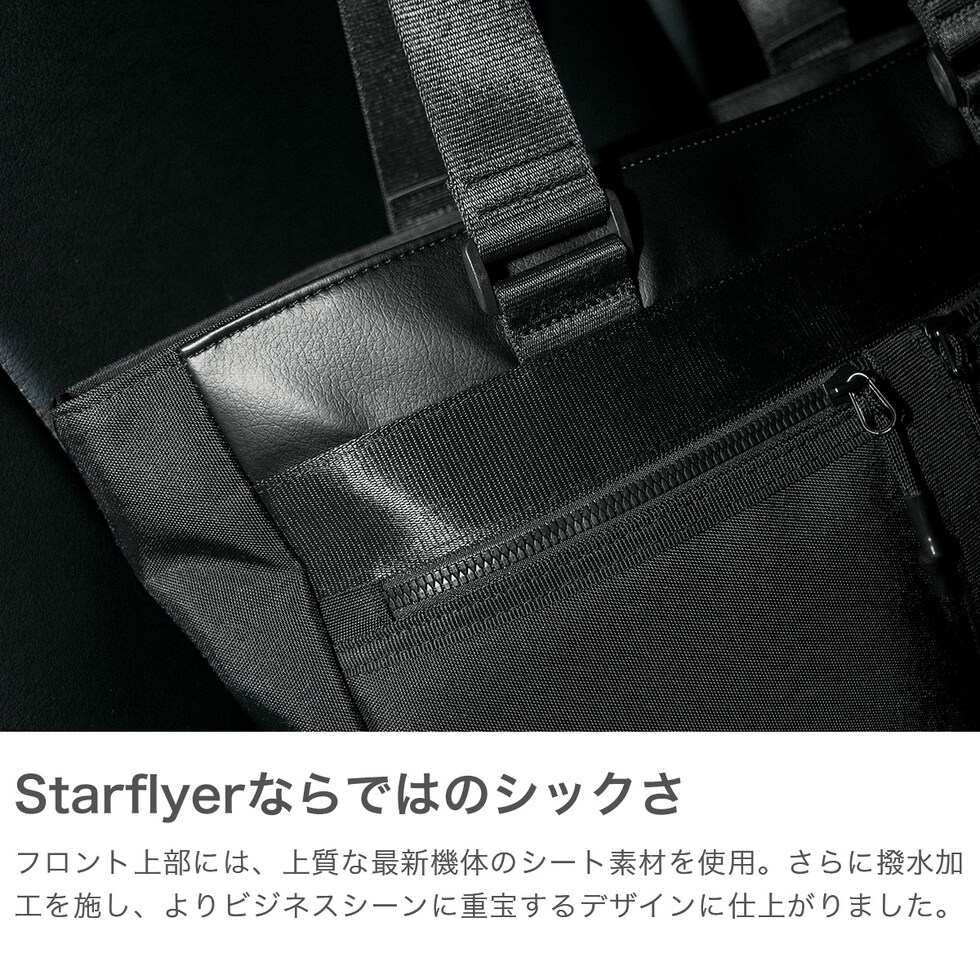 今までにない価値を提供する「第3の航空会社」スターフライヤーとのコラボコレクションからビジネストートが登場。さまざまな場面でのライフスタイルを現代的に解釈し、ビジネスシーンやトリップでシームレスに活躍する機能性と、コラボならではのラグジュアリーな表情を備えたアイテムです。