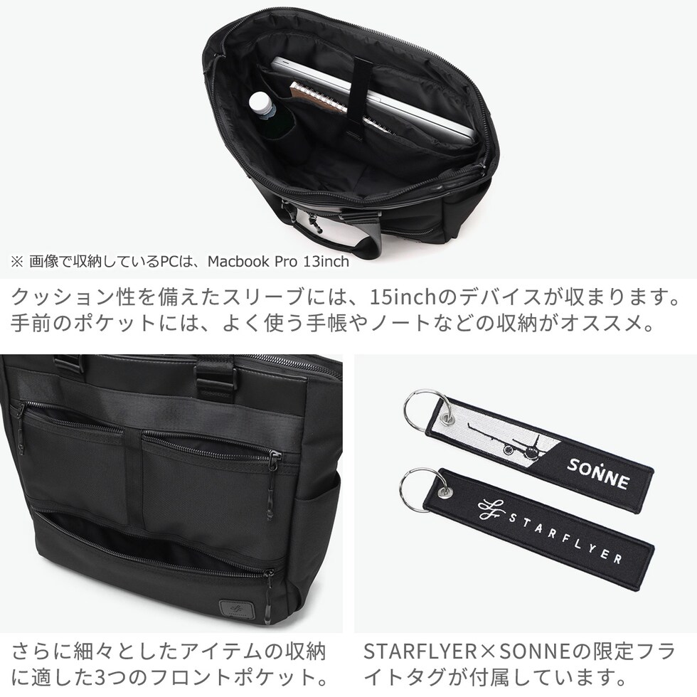 ゾンネ トートバッグ メンズ 大きめ ファスナー付き ブランド SONNE 軽い カジュアル メンズバッグ 横型 ビジネストート シンプル 黒 通勤 営業 肩掛け 撥水 A4 B4 PC 15inch STAR FLYER SOSF002