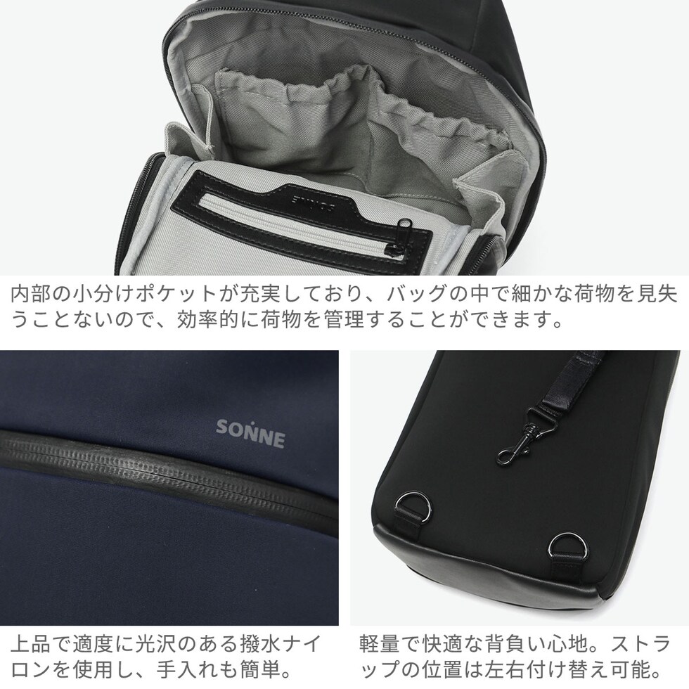 ゾンネ ボディバッグ メンズ ブランド SONNE かっこいい 小さめ 小さい 斜めがけバッグ 斜めがけ ショルダー 縦型 縦 ナイロン 軽量 軽い おしゃれ シンプル 止水ファスナー 撥水 A5 TRIM BODY BAG SOSL005