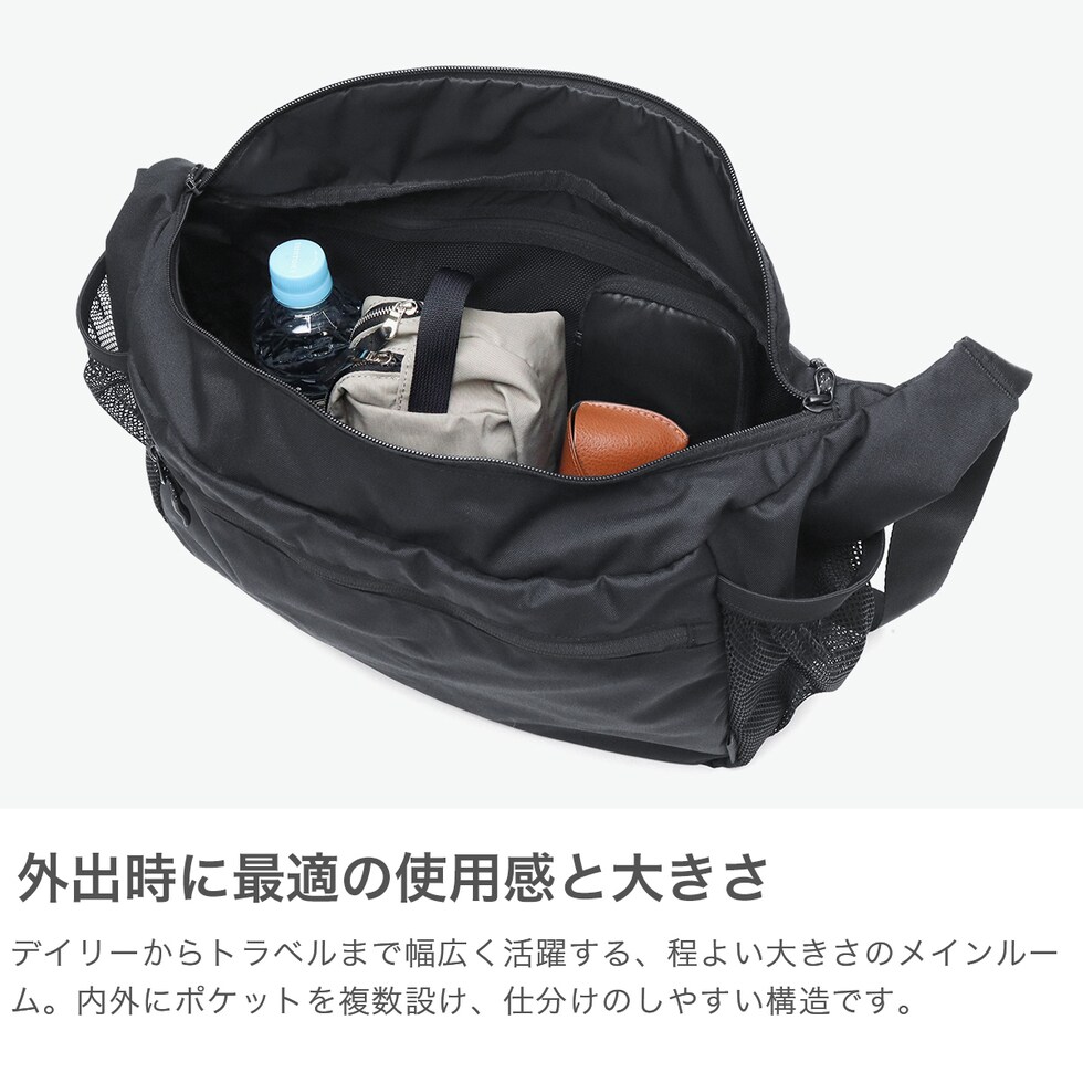 体にフィットするバッグ 使いやすさの向上を図るとともに環境配慮も兼ねてリニューアルした「Everyday Use」シリーズのショルダーバッグ。PFAS(有機フッ素化合物)を使用しない、撥水生地を採用しています。クロスボディで持った際に体にフィットし、快適な使い心地を実現。本体には多数のメッシュポケットを備え、荷物の仕分けがしやすい構造になっています。 |