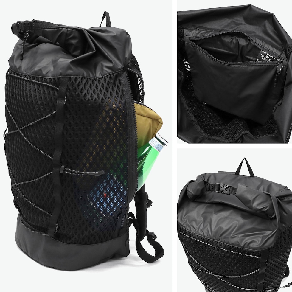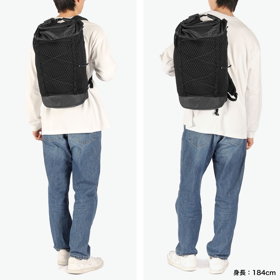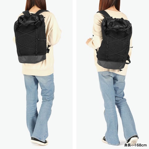 軽快な機能美リュック 機能的でありながらも軽量で、快適に背負えるバックパック。全体がメッシュ素材で中身が透けて見えるので、大容量ながらも軽やかな印象に。日常からアウトドアまで対応できる実用性とデザイン性を兼ね備え、ユニセックスで使えるアイテムになっています。 |