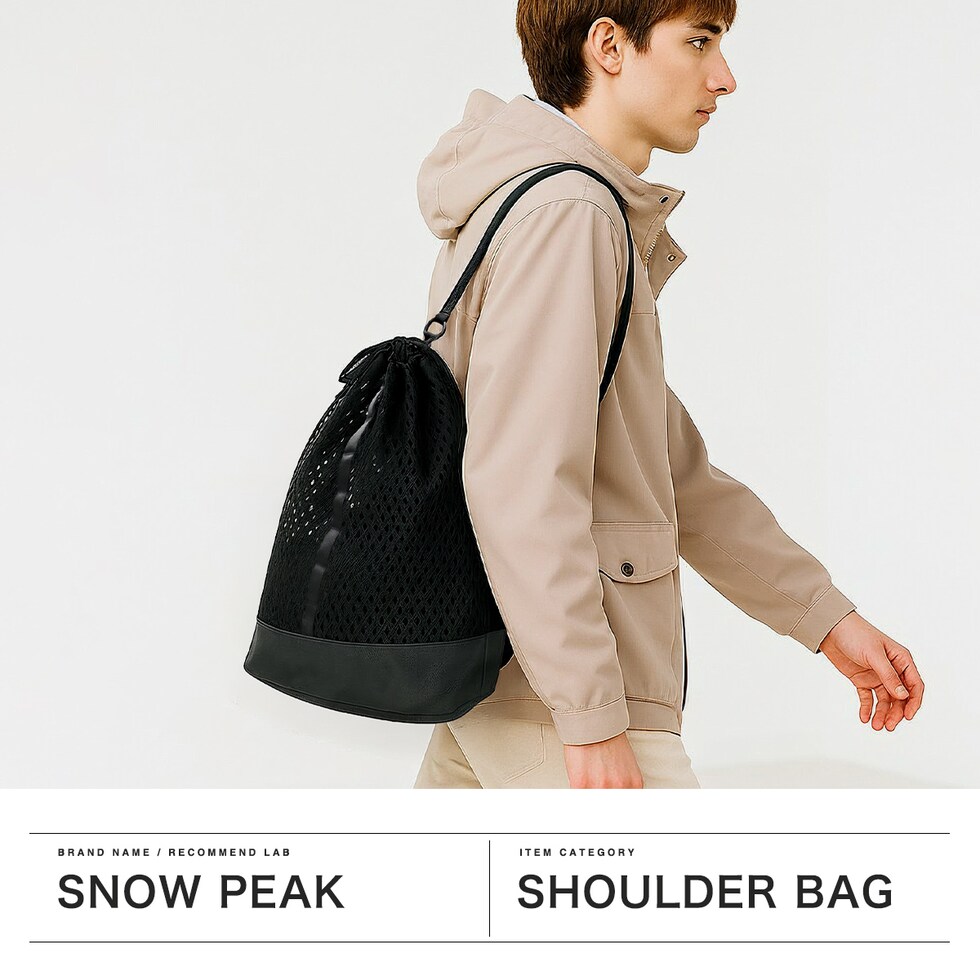 スノーピーク ショルダーバッグ メンズ レディース ブランド 斜めがけバッグ snow peak ワンショルダー 巾着 ダブルメッシュ 軽量 軽い ドローコード A4 17L Double Face Mesh Shoulder Bag AC-25SU408