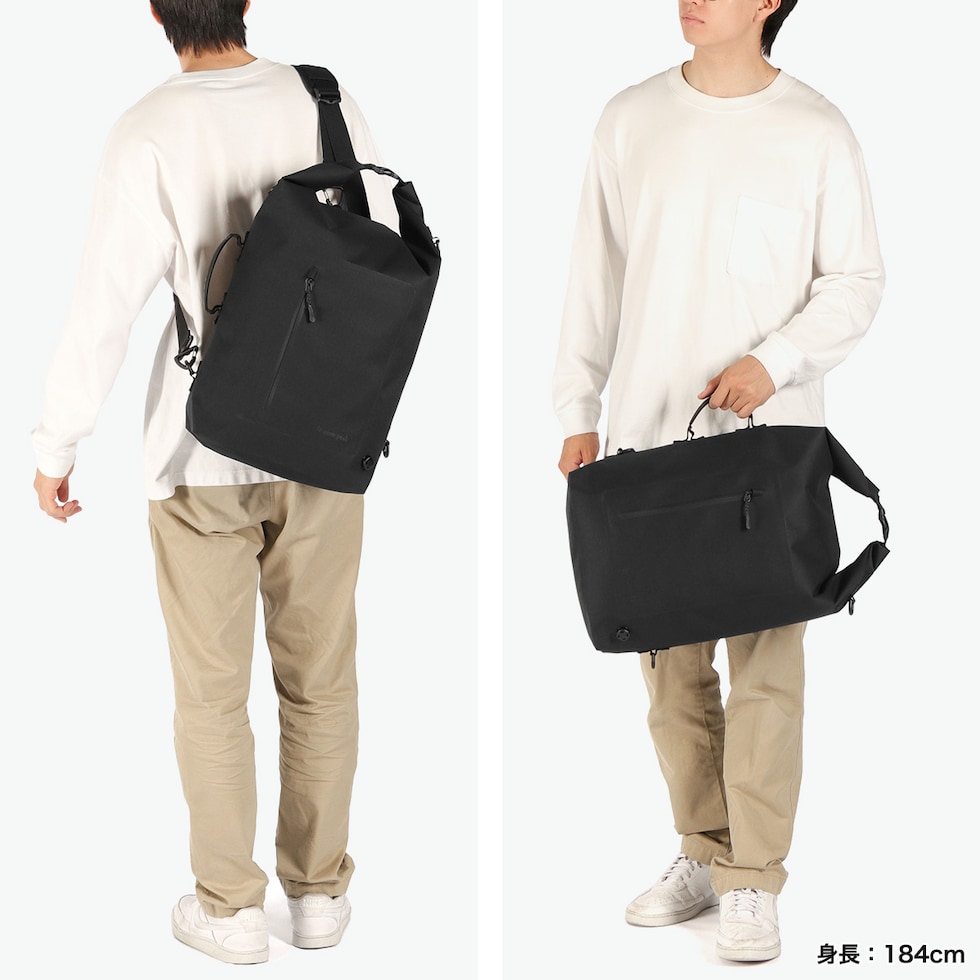 あらゆるシーンに対応 高い気密性と防水性を備え、強靭さも兼ね備えた防水素材のWater Proofシリーズから、バックパック・ショルダーバッグ・ワンショルダーバッグ・ボストンバッグと用途に合わせて、4通りで使用できるバッグが登場。ロールトップにする事で気密性防水性を上げ、折り返す回数で高さの調整も可能となる、多用途に使える防水バッグです。 |