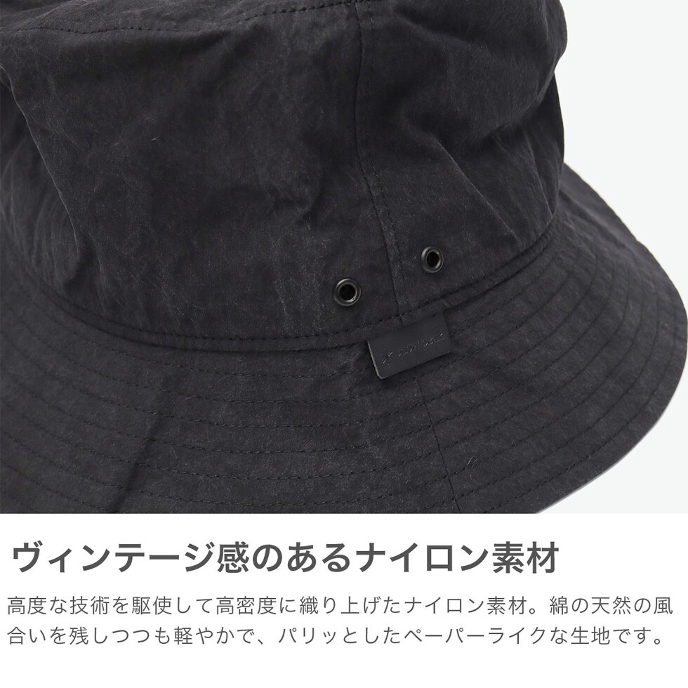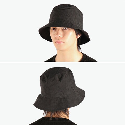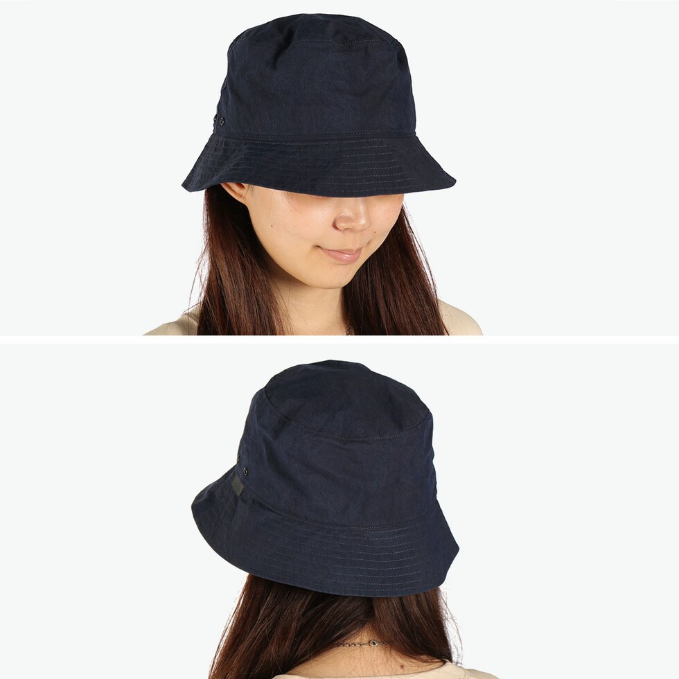 綿の天然の風合いを残しつつも非常に軽やかさのある、パリッとしたペーパーライクな生地で、ハリがありきれいなシルエットを保てるバケットハット。アウトドアや旅行にもおすすめです。クラウン本体の両サイドにアイレットを施して通気性を確保し、着用時に発生する帽子内の蒸れを軽減しています。裏側はメッシュ仕様でドライなかぶり心地がポイント。シンプルなデザインにアクセントを添える、ピスネームがあしらわれています。