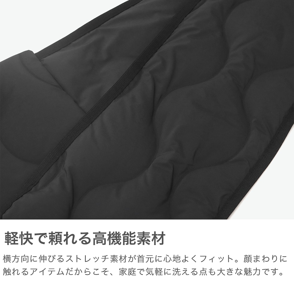アパレルラインにこれまでなかった新しいインナーダウンシリーズ『Seamless Quilted Down』のマフラー。高密度素材と700FPの撥水ダウンを使用し、濡れによる保温力低下を防ぎながら、家庭洗濯も可能な実用性を備えています。生地は横方向に伸縮するため、首元になじみやすく快適なつけ心地に。アウターに響かず、持ち運びに便利なコンパクトなサイズで、冬のギフトにも最適なアイテムです。