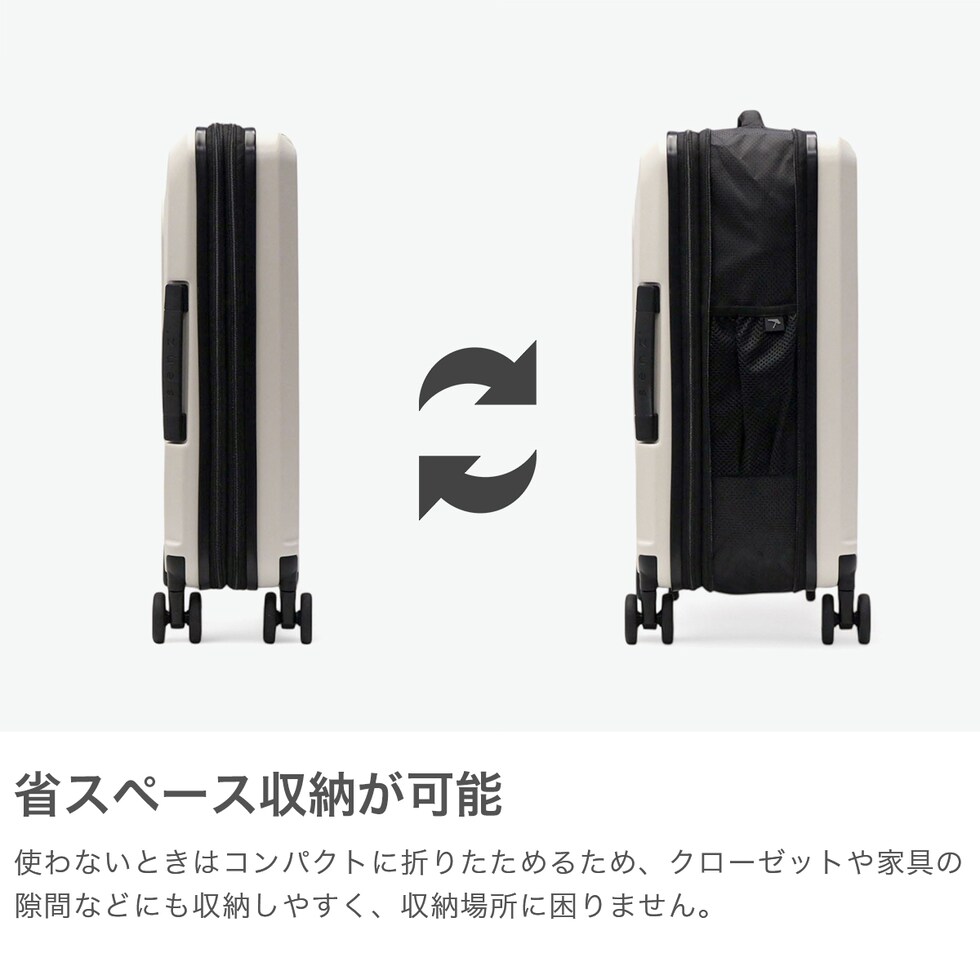 旅行時には大きく使え、保管時にはコンパクトにまとまる、38L容量のスーツケース。折りたたむと幅がわずか12.5cmとなり、収納スペースを取りません。スタイリッシュなデザイン性に加え、軽量ながら耐久性が高く収納力にも優れた高機能なアイテムです。