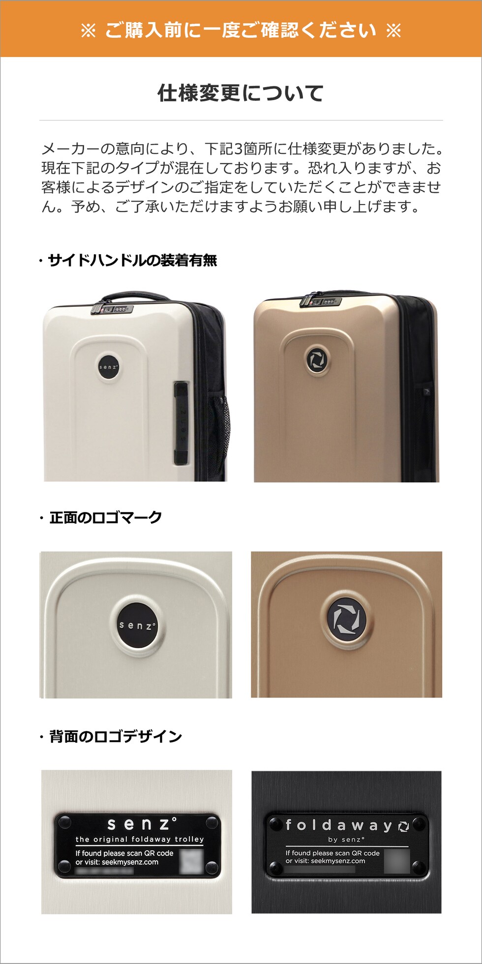 【正規品1年保証】 senz° スーツケース 機内持ち込み S センズ キャリーケース Sサイズ コンパクト 出張 旅行 折りたたみ 38L 3~4泊 耐水性 拡張 小型 TSA 静音 senz Foldaway carry on trolley SZ-8801のレビュー