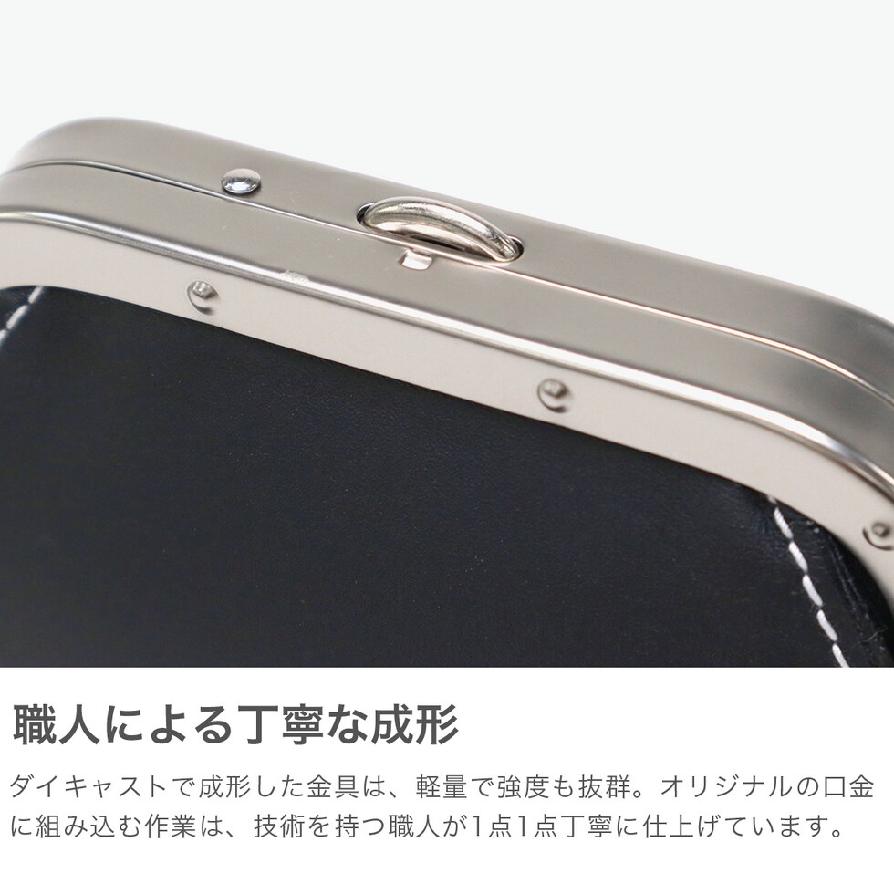 フランス最古のタンナー『DEGERMANN社(現HAAS社)』の最高級カーフレザーを使用した、がま口コインケースです。長年歴史のある日本のお財布専門工場で、技術を用いて作った丁寧なつくりが魅力。キメ細かく滑らかでありながらタフに使える強さを併せ持ち、贈り物としても喜ばれるアイテムとなっています。