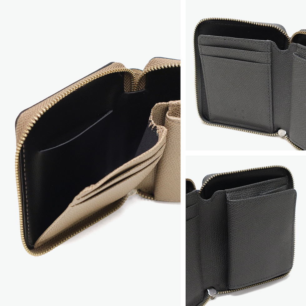 高級感のある逸品 最高級のカーフレザーを使用した二つ折り財布。繊細なエンボス加工による豊かな表情と、キズが目立ちにくい丈夫さが魅力です。女性の手にも収まるコンパクトなサイズ感で、小さめのバッグにもすっきり収納可能。大きく開く小銭入れや取り出しやすいお札入れなど、使いやすさも追求しています。細部まで丁寧に仕立てた、高級感のある逸品です。 |