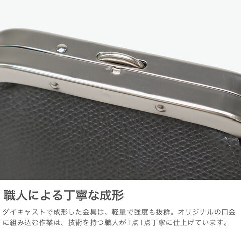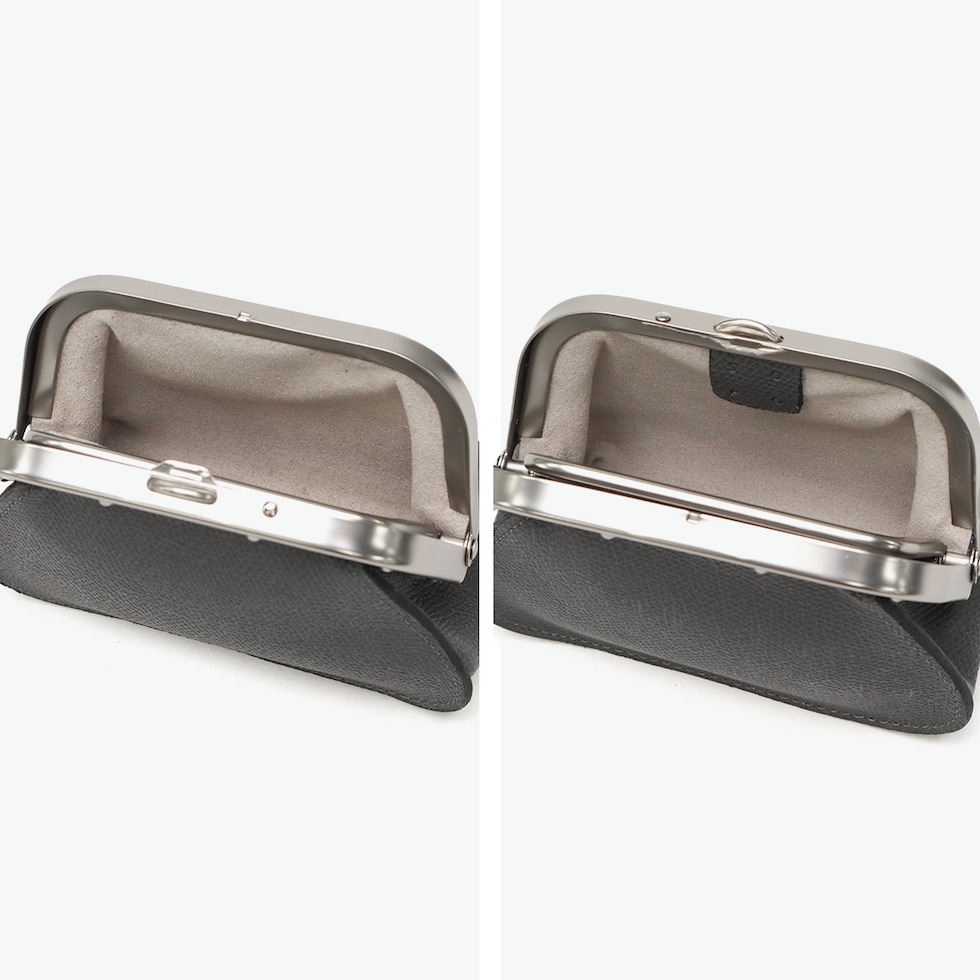 レザーコインケース 最高級のカーフレザーを使用した、愛らしいフォルムのコインケース。繊細なエンボス加工による豊かな表情と、キズが目立ちにくい丈夫さが魅力です。オリジナルのがま口金具は、艶消しのシルバーで重厚感を保ちつつ、軽量で強度のある仕上がりに。小銭入れとしてはもちろん、小物入れとしても活躍してくれる唯一無二のアイテムです。 |
