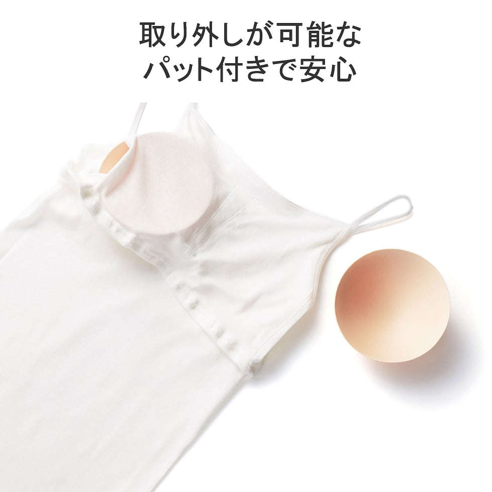 | 着心地良く使いやすい ストレートネックタイプ 人気のブラパットキャミソールのストレートネックタイプ。少し透け感のあるお洋服を着用する際にも安心のデザインです。光沢のあるテープは襟元からのぞいても上品で違和感がなく、カーディガンやシャツの下に直接着用する際も上品に着こなしていただけます。胸のパットは取り外し可能でお洗濯時も便利。また、オリジナルパッケージ入りなので、ちょっとしたギフトにも最適です。サイズをお選びいただく際は、基本的に普段着用されているお洋服と同じサイズをお勧めしております。 |