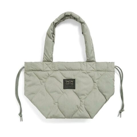 | 上質なダウンを使用した 小さめトートバッグ ヘチマキルトのダウンステッチでミリタリーテイストを加えた『MILITARY LINE』シリーズの2WAYトートバッグ。リップストップ生地に800FPの上質ダウンを採用し、ふかふかとした立体的な仕上がり。バッグ口を絞ると巾着バッグに変化し、スタイルに合わせて2WAYで楽しめます。スマホや小物等が収まるランチトートサイズで、ちょっとしたお出かけにぴったりの可愛らしいバッグです。 |