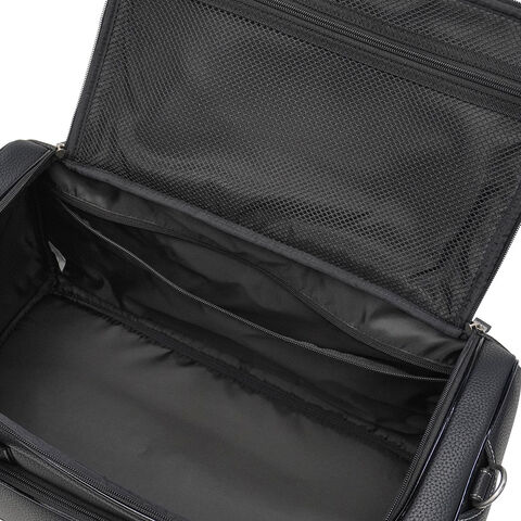 大人のゴルフボストン レザー調PU生地とエナメル生地を切り替えた、高級感のあるボストンバッグ。メリハリのある配色がスタイリッシュな印象を与えます。大きく開くコの字型開閉口で出し入れがしやすく、内外の多彩なポケットで整理もスムーズに。ゴルフロッカーに立てた状態でも収納できるよう、側面ハンドルがついた仕様もポイントです。取り外し可能なパット付きショルダーストラップも付属し、使い勝手とデザイン性を両立しています。 |