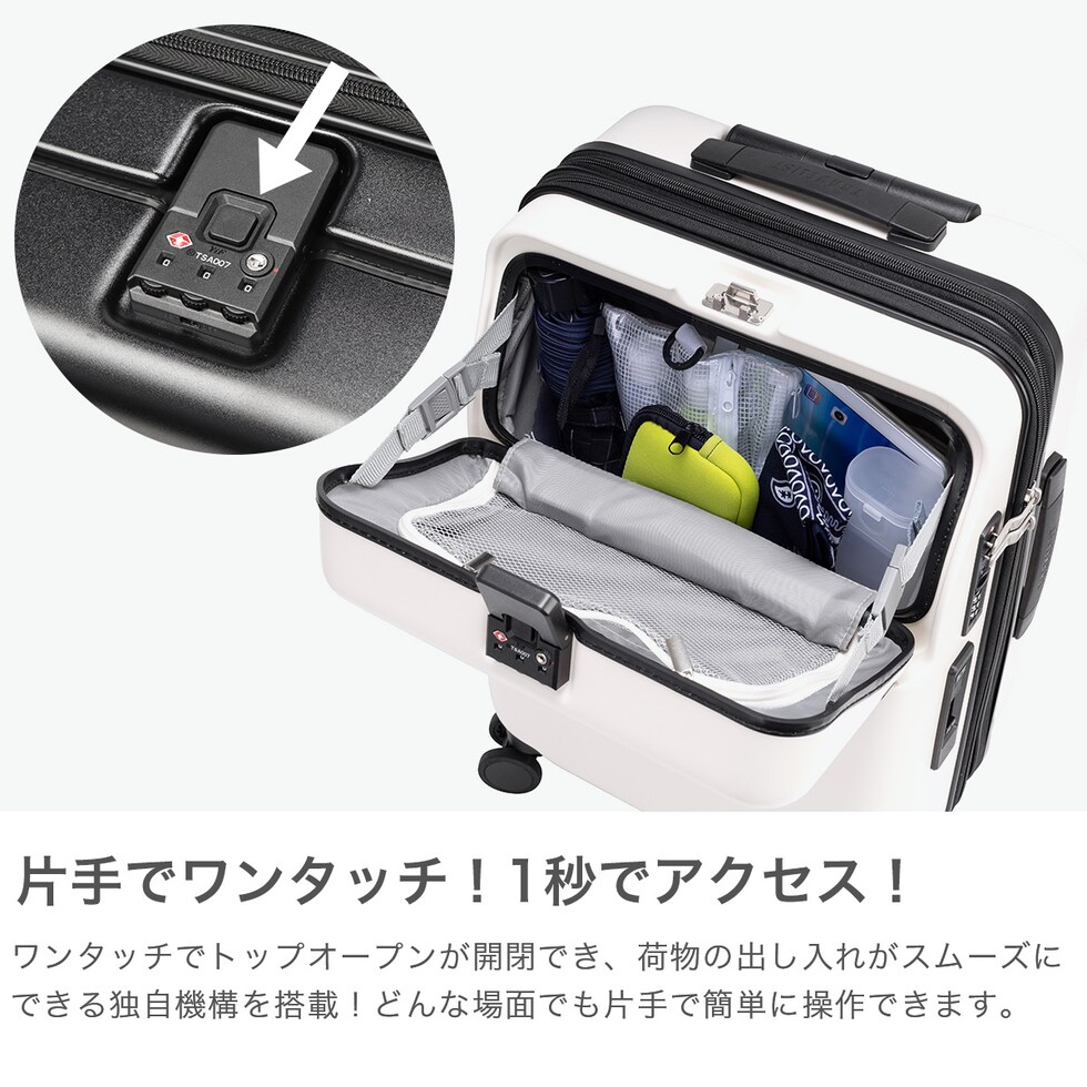 【正規品3年保証】 トラベリスト スーツケース 機内持ち込み Sサイズ フロントオープン TRAVELIST ワンタッチ トップオープン 拡張 軽量 ストッパー スマホスタンド ドリンクホルダー TSAロック 35~43L 4~5泊 ファースト 76-25140