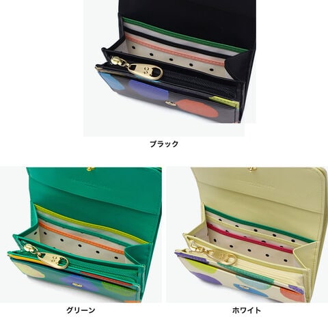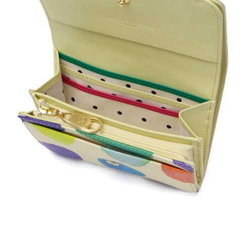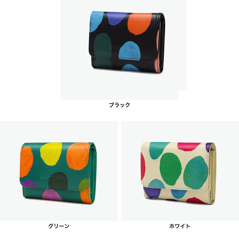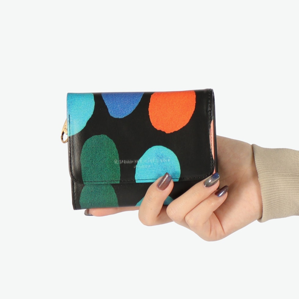 色使いも鮮やかな財布 カラフルで大きな水玉模様が目を引く、ポップで可愛らしい二つ折り財布。鮮やかな色使いと遊び心あふれるデザインが魅力です。手に取るたび気持ちも明るくなるような仕上がりで、自分用にはもちろん、ギフトにもぴったりのアイテムです。 |