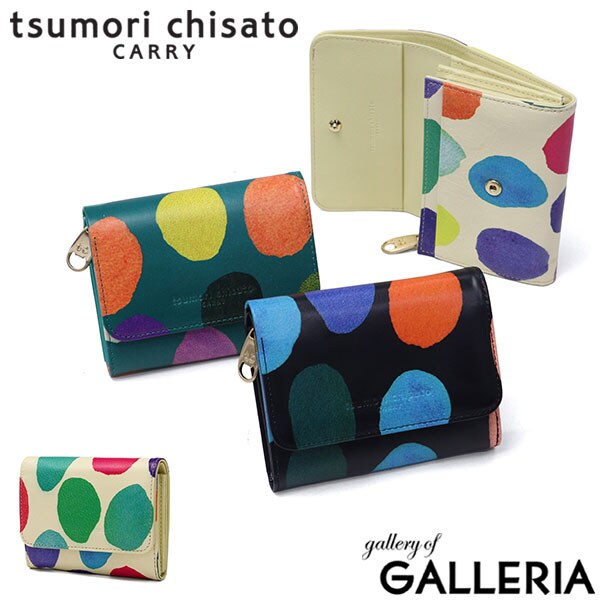 ツモリチサト 二つ折り財布 レディース ブランド 本革 tsumori chisato CARRY 財布 かわいい 大人 二つ折 カード入れ 小銭入れ 牛革 水玉 ドット カラフル 日本製 カラフルズームドット 折り財布 57951